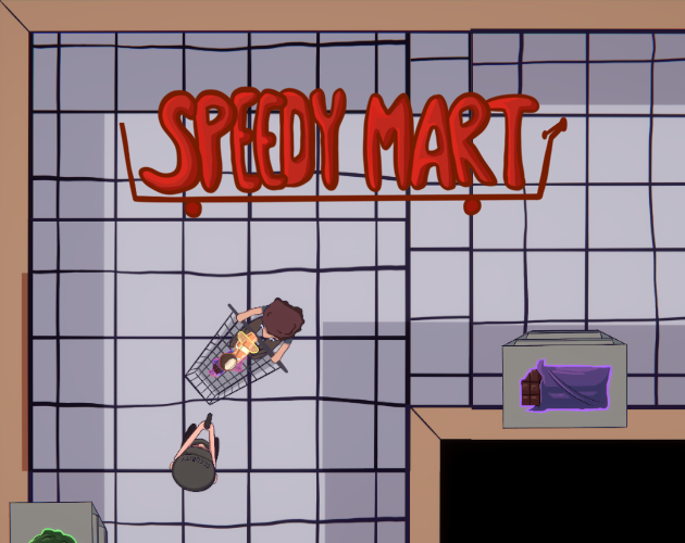 In SpeedyMart you take control of a slightly clumsy shopping cart. Crash into shelves to try and get as many items as you can, before the guard catches you!